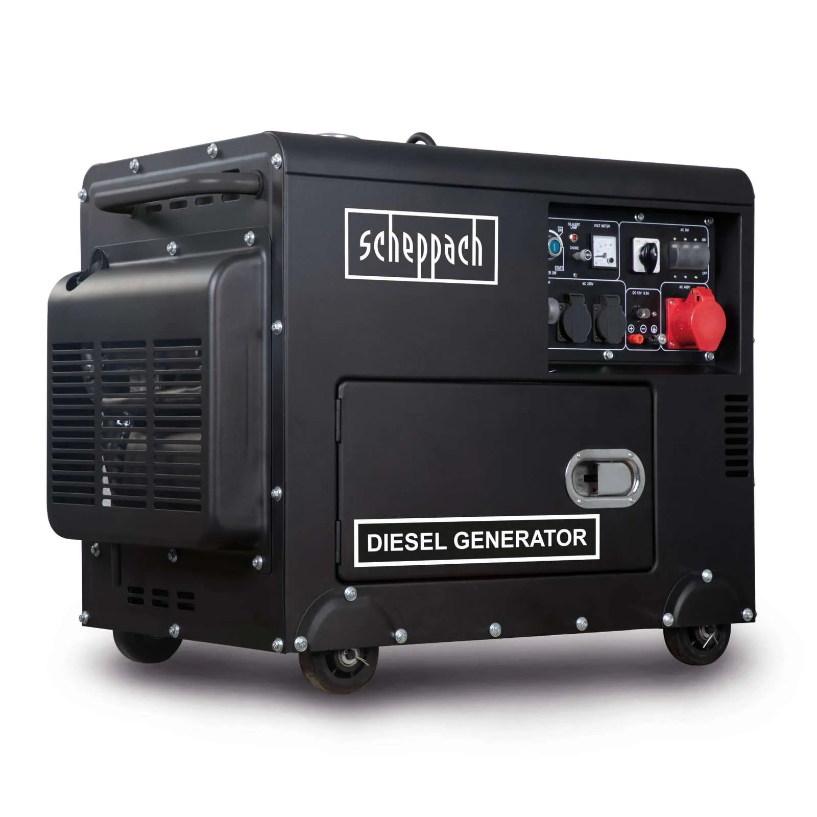 Der Stromerzeuger verfügt über ein geschlossenes, robustes Gehäuse mit Lüftungsschlitzen, vier Rädern sowie einem Handgriff und einer Feststellbremse zur Positionierung. Ausgestattet ist das Aggregat mit einem luftgekühlten 4-Takt-Dieselmotor, Elektrostart und einer Tankanzeige; zur Motorsicherung ist eine Ölmängelsicherung integriert. Zur elektrischen Ausstattung gehören eine AVR-Spannungsregelung, Überlastungsschutzschalter sowie Anschlüsse für 400 V, zwei 230 V Steckdosen und einen 12 V DC-Ausgang. Der Kraftstofftank bietet ein Fassungsvermögen von 16 Litern und ermöglicht bei Teillast einen Verbrauch von rund 1,43 l/h; das Gesamtgewicht des Geräts beträgt 148 kg.
