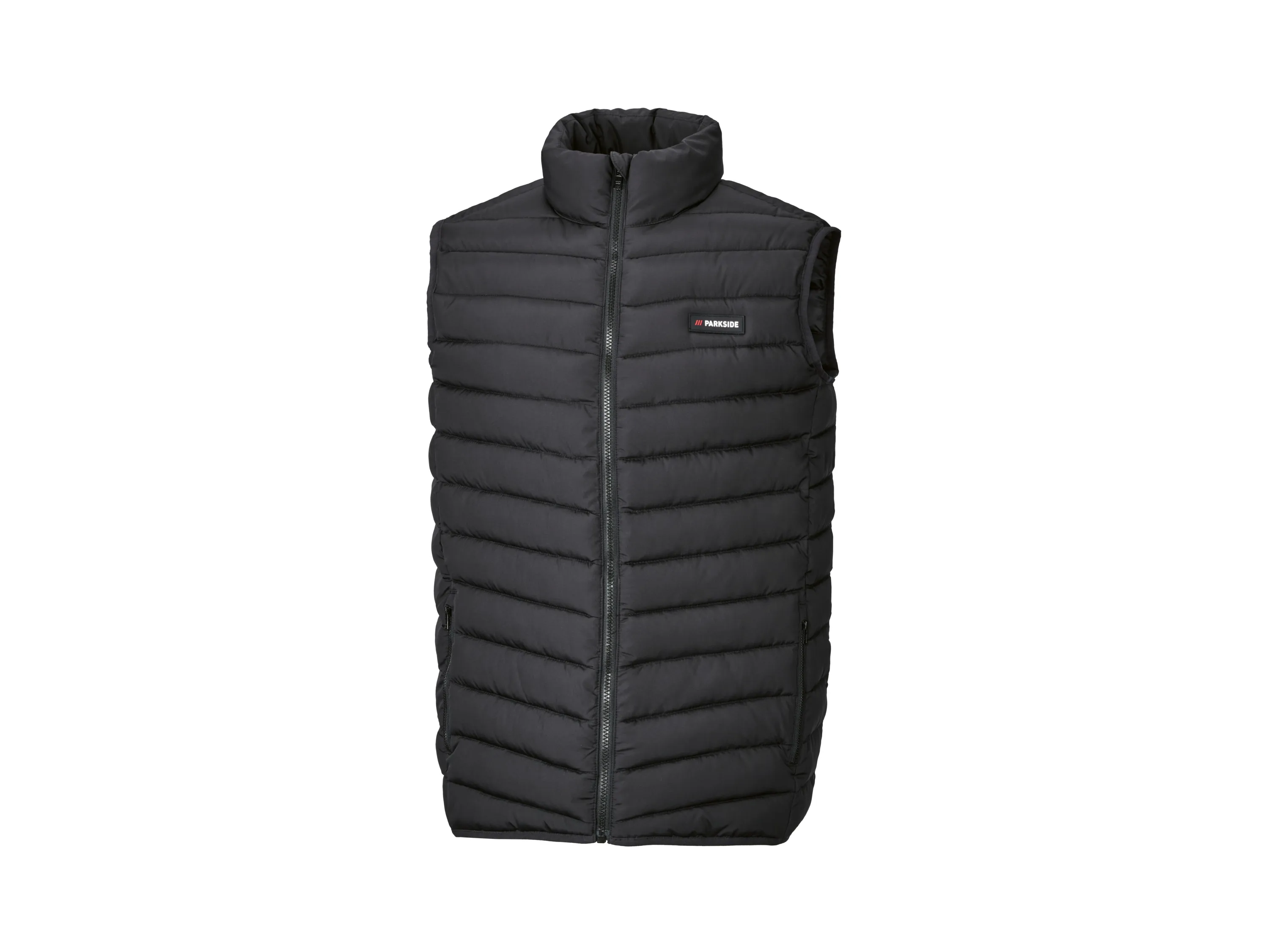 Die Steppweste ist aus 100 % recyceltem Polyester gefertigt und verfügt über eine getrennte Wattierung aus ebenfalls recyceltem Polyester. Das Außenmaterial ist mit einer PFC-freien Imprägnierung (Bionic-Finish® ECO) ausgerüstet und bietet wasserabweisende sowie windabweisende Eigenschaften. Zur Ausstattung gehören ein Stehkragen, ein durchgehender Reißverschluss mit Kinnschutz, seitliche Eingrifftaschen mit Reißverschluss sowie ein gerader, legerer Schnitt. Verschlüsse sind mit einem hochwertigen, recycelten YKK-Markenreißverschluss ausgeführt. Zertifizierungen wie Oeko-Tex® Standard 100 und der Global Recycled Standard (GRS) sind dokumentiert.