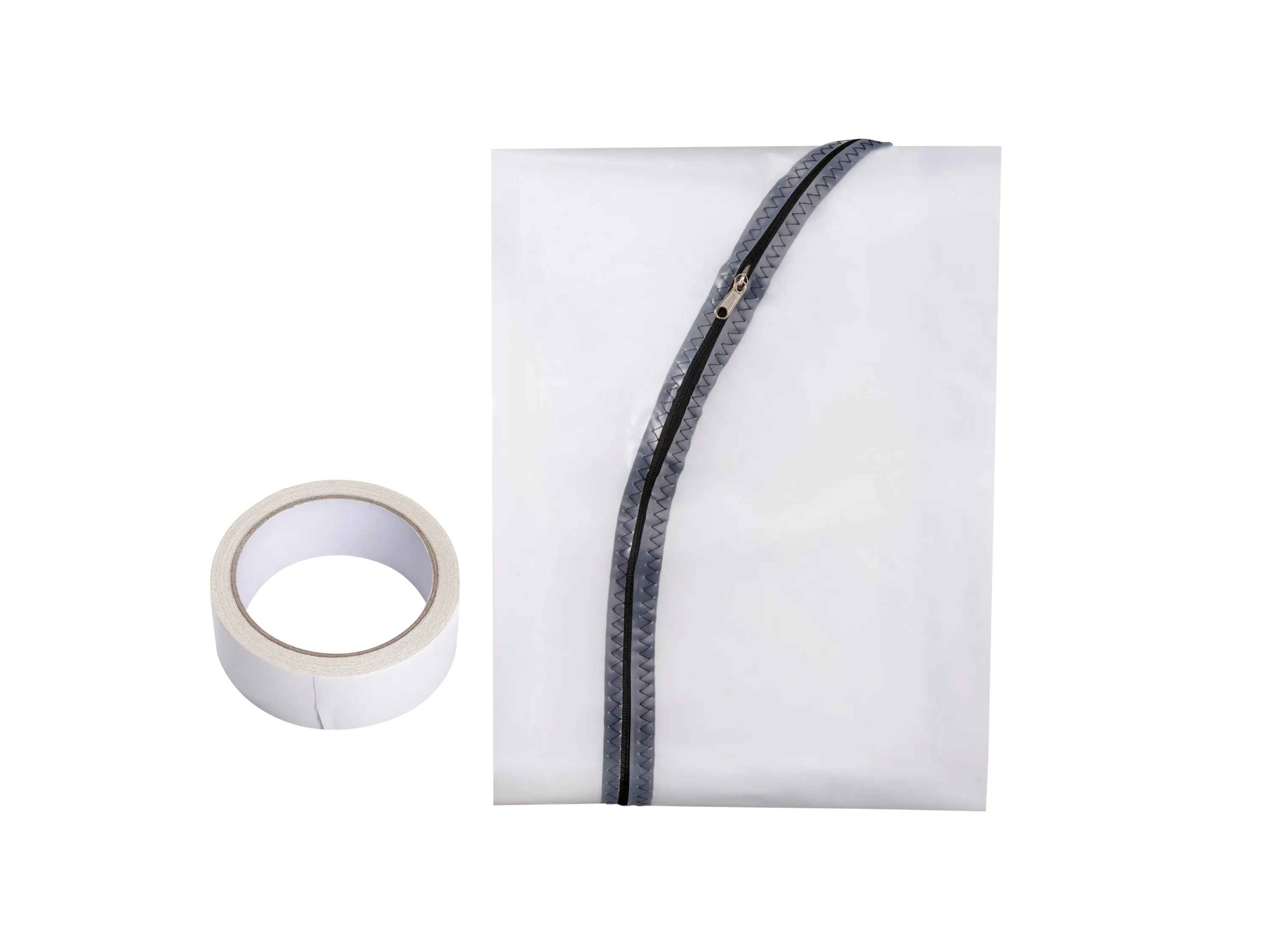 Das Set umfasst mehrere Abdecklösungen für Innen- und Außenbereich sowie eine separate Staubschutztür. Die Innen- und Außenfoliensets enthalten jeweils Abdeckfolien mit angefügter Klebebandkante, ein Abdeckpapier bzw. zusätzliche Folien und einen Spezial-Folienschneider; die Ausführungen sind in unterschiedlichen Längen und Breiten geliefert. Das Abdeckplanen-Set enthält leichte und schwere Abdeckplanen in jeweils zwei Exemplaren. Die Staubschutztür besteht aus Kunststoff, ist mit einem beidseitig bedienbaren Zwei-Wege-Reißverschluss in L-Form ausgestattet, verfügt über Einhängelaschen zur Befestigung des geöffneten Zugangs und wird mit doppelseitigem Klebeband geliefert. Alle Komponenten sind für randgenaues Abkleben und schnelles Abdecken ausgeführt.