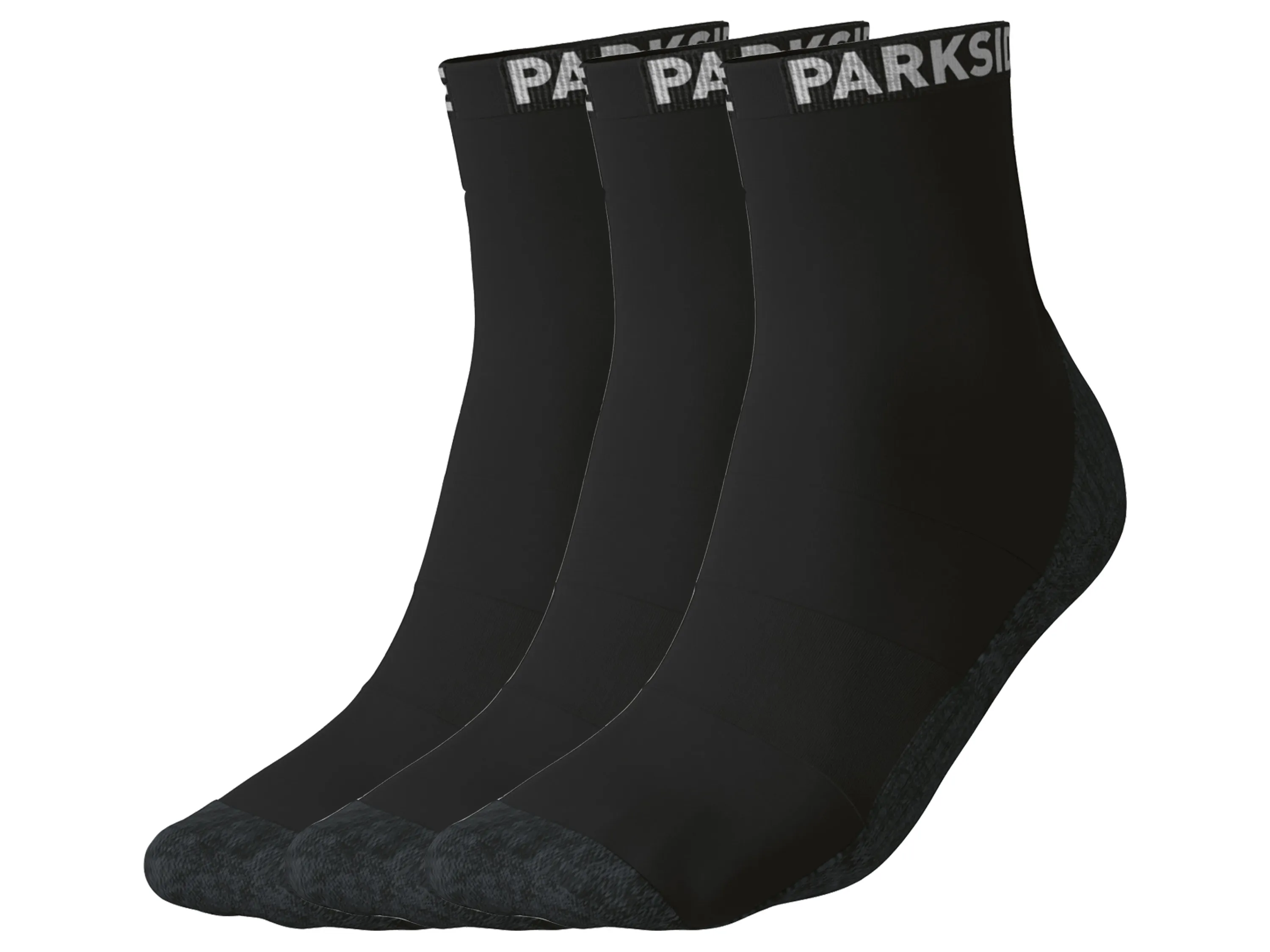 Die Socken sind aus einem Materialmix gefertigt und weisen ein Mesh-Design auf dem Fußrücken zur erhöhten Atmungsaktivität auf. Sie verfügen über ein elastisches Stützband um die Fußmitte sowie verstärkte Sohle, Ferse und Fußspitze für verbesserten Tragekomfort und erhöhte Haltbarkeit. Die Beimischung von Elasthan (Creora™) sorgt für Formstabilität, während recycelter Polyester den Anteil an Recyclingmaterial erhöht. Die Ausführung wird im Dreierpack geliefert und ist mit Schadstoffprüfungen und Zertifizierungen versehen. Pflegehinweise sind auf niedrige Waschtemperatur und den Ausschluss von Bleichmitteln, Trockner, Bügeleisen und chemischer Reinigung ausgelegt.