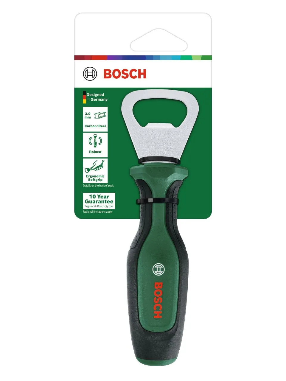 Der Flaschenöffner ist aus robustem Kohlenstoffstahl gefertigt und verfügt über eine matt chrombeschichtete Oberfläche. Die Metalllippe ist besonders massiv ausgeführt und ermöglicht ein sicheres Entfernen von Kronkorken. Der Zweikomponenten-Softragriff bietet ergonomische Flächen für komfortables Halten und einfache Bedienung. Das Werkzeug ist kompakt gestaltet und lässt sich platzsparend lagern oder an einem Haken aufhängen. Die Ausführung weist eine definierte Härte auf und ist mit klaren Abmessungen und geringem Gewicht spezifiziert.