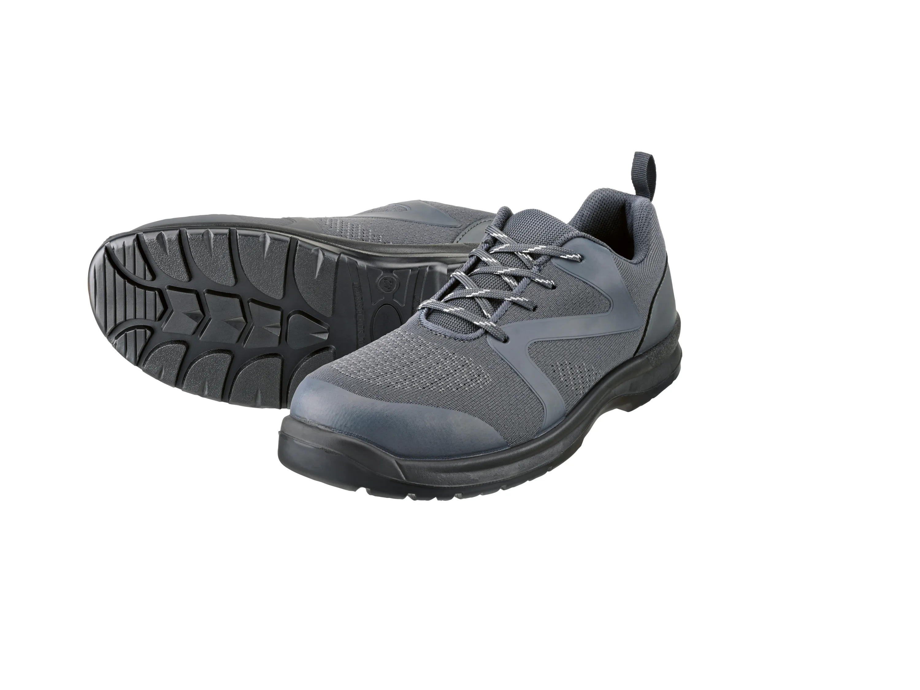 Der Sicherheitsschuh verfügt über eine Stahl-Zehenkappe und eine durchtrittsichere Sohle, die mechanischen Schutz bieten. Das Obermaterial besteht aus Textil kombiniert mit sonstigen Materialien, während Futter und Decksohle aus Textil gefertigt sind. Die profilierte PU-Laufsohle sorgt für Rutschhemmung und eine definierte Profilierung zur Standfestigkeit. Das Modell entspricht der Sicherheitsklasse S1P und ist nach EN ISO 20345:2022 + A1:2024 geprüft. Verfügbare Größen reichen vom 41 bis 46 und die Ausführung zeigt eine anthrazit/schwarze Farbgebung.