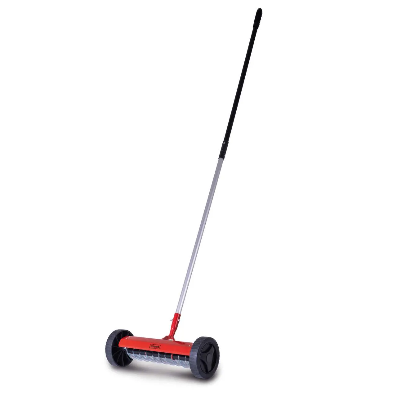 Der manuelle Vertikutierer verfügt über eine 34 cm breite Arbeitswalze mit 11 Vertikutiermessern und ist für emissionsfreien Betrieb ausgelegt. Der teilbare Stiel aus Aluminium ist 180 cm lang und ermöglicht platzsparende Lagerung sowie einfachen Transport. Leichtlaufräder mit rasenschonendem Profil und ein gummierter Griff sorgen für ergonomische Handhabung und kraftschonendes Arbeiten. Die Arbeitshöhe ist einstellbar und die kompakte Bauweise erleichtert das Manövrieren auf der Rasenfläche. Alle relevanten Komponenten sind robust ausgeführt, um eine gleichmäßige Leistung und lange Nutzungsdauer zu bieten.