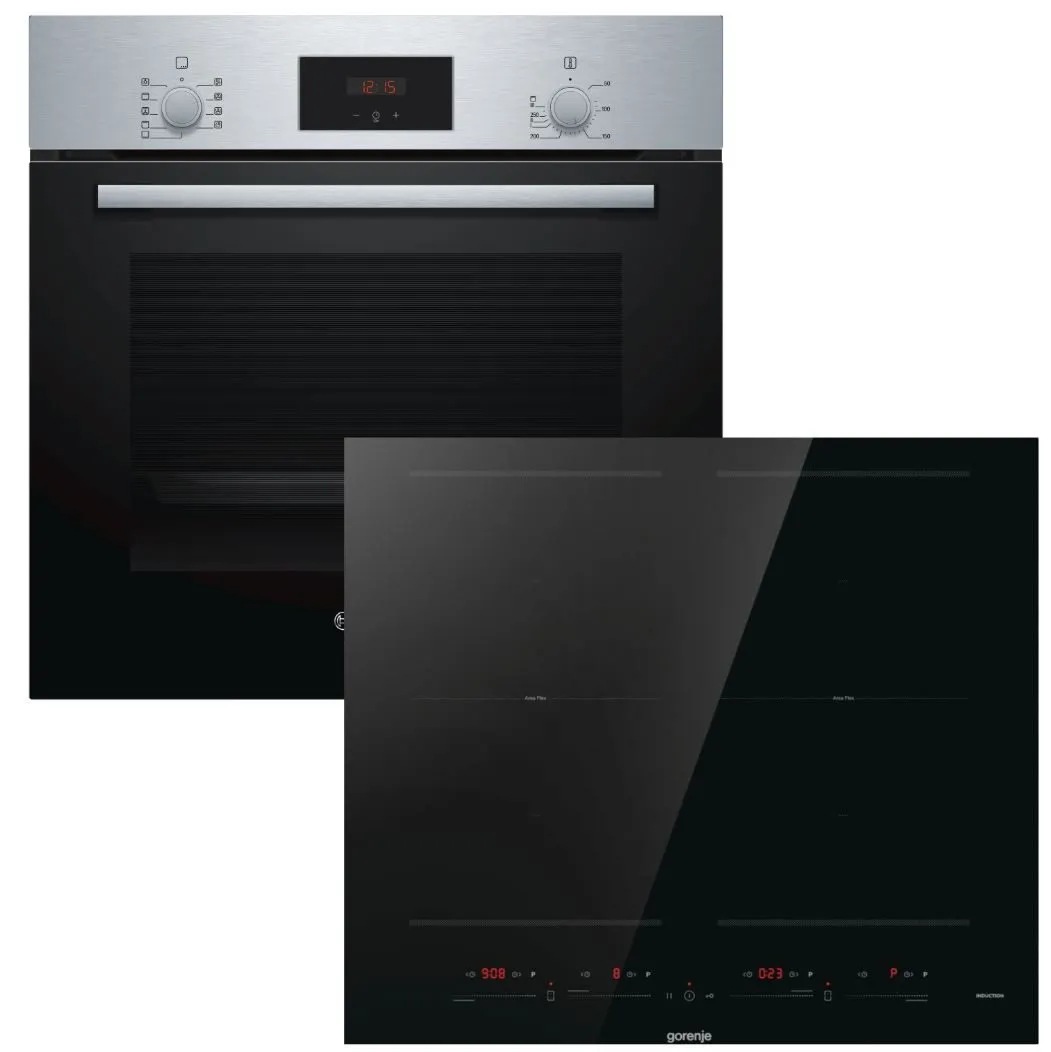Das Set kombiniert einen Einbaubackofen mit Teleskopauszug und ein autarkes Induktionskochfeld in kompakter Ausführung. Der Backofen verfügt über 3D-Heißluft, sieben Heizarten, eine Granit-Emaille-Innenfläche, eine Schnellaufheizung sowie eine LED-Anzeige und Timerfunktionen; der Innenraum ist voll verglast und die Türinnenseite glatt ausgeführt. Das Kochfeld arbeitet mit Induktion, besitzt vier Kochzonen mit Double AreaFlex und PowerBoost-Funktion, berührungsempfindliche Slider-Steuerung sowie Sicherheitsfunktionen wie Kindersicherung und Überhitzungsschutz. Beide Geräte werden mit den jeweils angegebenen Einbaumaßen und Anschlusswerten geliefert; im Lieferumfang des Ofens sind Rost, Backblech und ein Teleskopauszug enthalten.