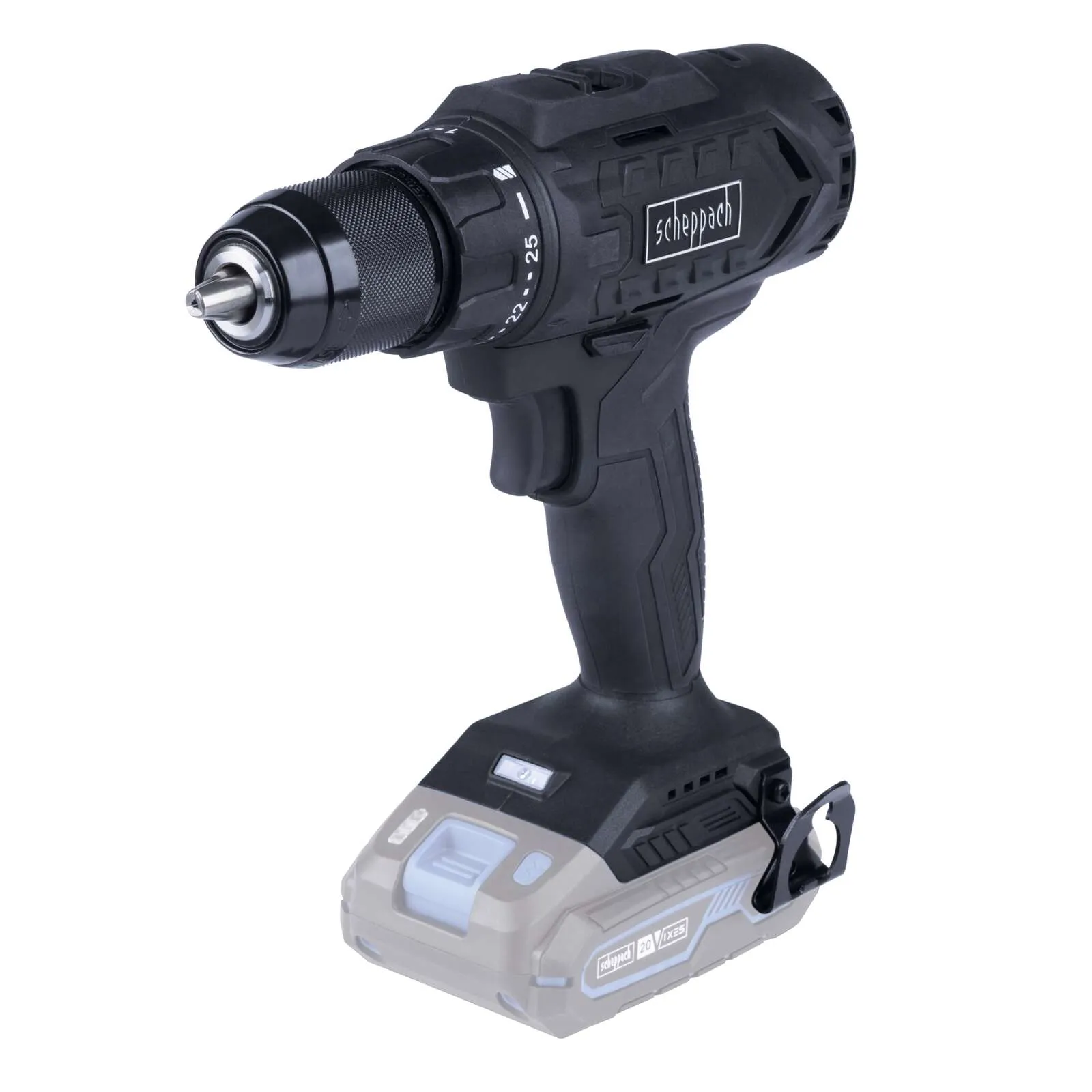 Das Gerät verfügt über eine 2in1-Funktion zum Bohren und Schrauben sowie ein robustes Schnellspannmetallbohrfutter mit automatischer Spindelarretierung. Die Drehzahl ist stufenlos über den Ein-/Ausschalter regelbar, ergänzt durch ein 2-Gang-Getriebe und Rechts-/Linkslauf. Zur Einstellung des Drehmoments stehen 25 Stufen zur Verfügung; die integrierte LED-Arbeitsleuchte besitzt eine Nachleuchtdauer von 10 Sekunden. Der Bohrschrauber ist als Teil einer 20-Volt-Systemreihe konzipiert und wird ohne Akku und Ladegerät geliefert. Ein praktischer Gürtelclip erleichtert den Transport und die Handhabung bei Montagearbeiten.