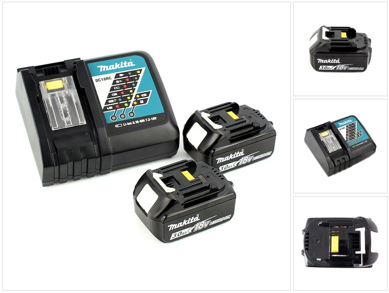 Das Set besteht aus zwei wiederaufladbaren Lithium-Ionen-Akkus des Typs BL1830B und einem DC18RC Schnellladegerät. Die Akkus besitzen eine geringe Selbstentladung sowie integrierten Kurzschluss-, Überspannungs- und Überhitzungsschutz, was die Lebensdauer unterstützt. Das Ladegerät steuert Spannung und Temperatur über einen Mikroprozessor und verfügt über eine gesteuerte Kühlluftführung für optimierte Ladevorgänge. Die Ausführung des Sets zielt auf kompakte Bauweise und geringes Gewicht der Akkupacks, während das Ladegerät schnelle Ladezeiten und eine Überwachung der Ladeströme bietet.