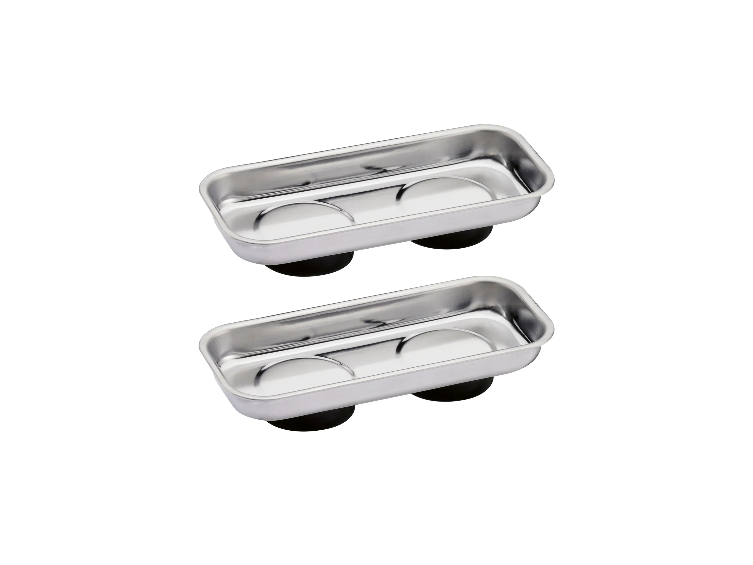 Die Magnetschalen werden mit beidseitiger Magnetwirkung ausgeführt und sind zur geordneten Aufbewahrung kleiner Metallteile konzipiert. Die Schalen verfügen über Kunststofffüße, die Kratzer auf empfindlichen Oberflächen reduzieren, und zeigen eine robuste Ausführung aus kombinierter Materialverarbeitung. Das Set beinhaltet zwei rechteckige, kleine Schalen mit unterschiedlichem Abmessungs- und Gewichtsprofil; die Magnetkraft liegt im Bereich starker Haltewirkung. Hinweise zur sicheren Verwendung bei tragbaren elektronischen Geräten und magnetischen Implantaten sind der Produktinformation beigefügt.