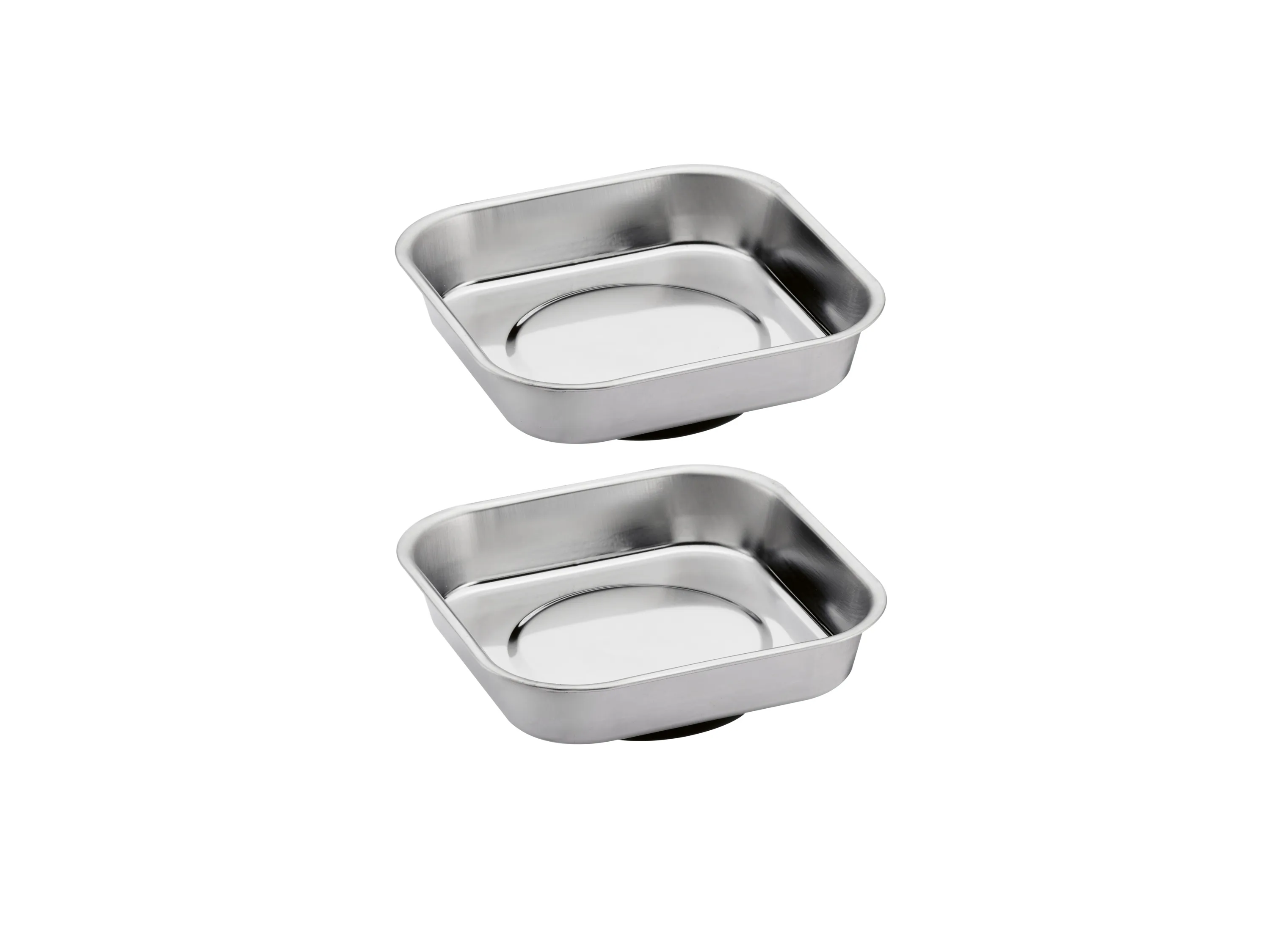 Das Set umfasst zwei quadratische Magnetschalen in kleiner Ausführung und ist aus Edelstahl, Kunststoff und Ferrit gefertigt. Die Schalen verfügen über beidseitige Magnetwirkung und zeigen eine stabile Verarbeitung mit glatten Kanten sowie Kunststofffüßen zum Schutz empfindlicher Oberflächen. Die Ausführung ist platzsparend gestaltet und wird als 2-teiliges Set geliefert. Die Oberflächen sind korrosionsbeständig lackiert beziehungsweise aus Edelstahl, die Magnete sind fest im Gehäuse eingelassen. Technische Sicherheitshinweise sind zu beachten, da starke Magnete enthalten sind.
