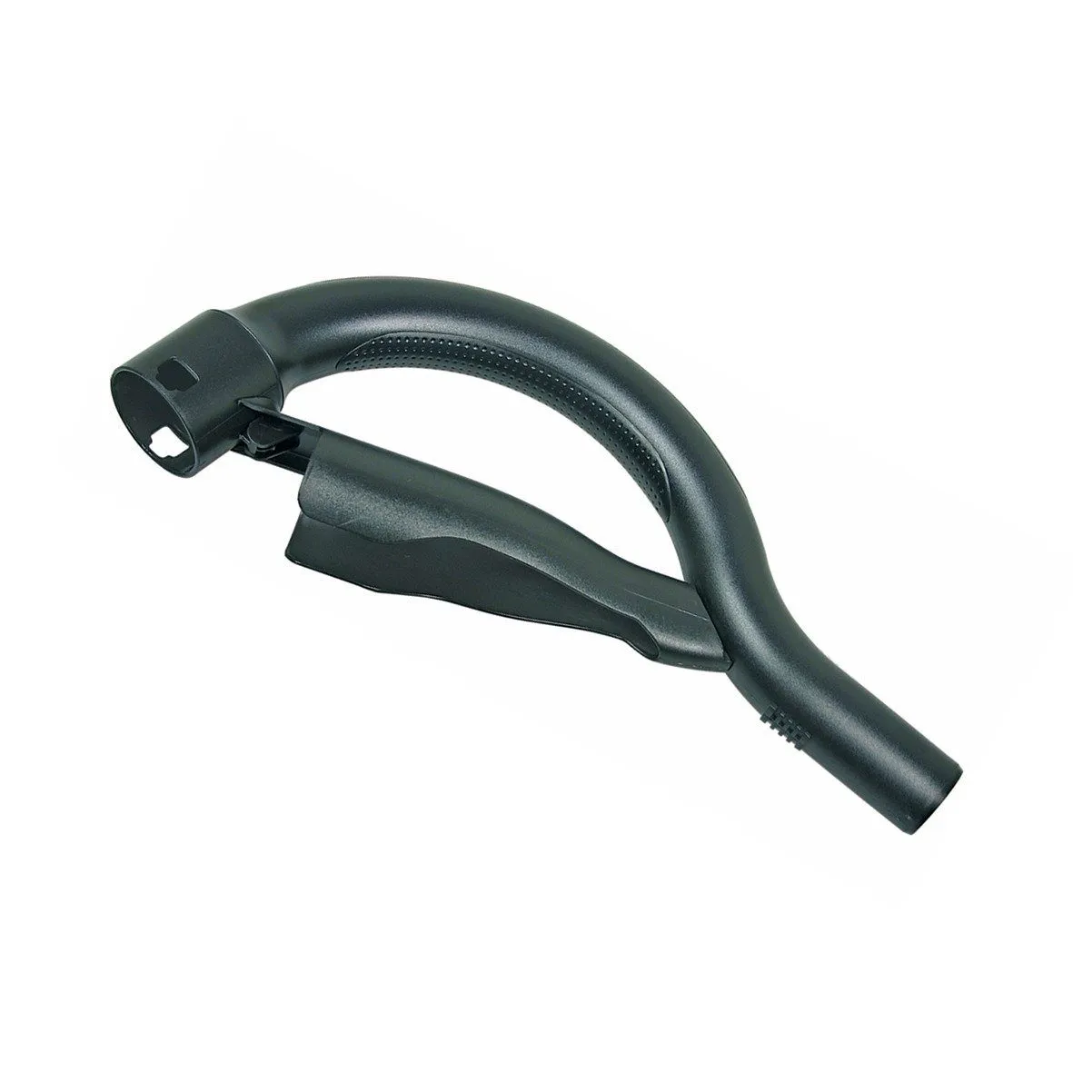 Der Handgriff ist für die Montage am Staubsaugerrohr konzipiert und verfügt auf einer Seite über ein Schlauchstecksystem, auf der anderen Seite über eine Aufnahme für Zubehör. Die Ausführung bietet eine standardisierte Anschlussstelle mit 35 mm Durchmesser und stellt die Verbindung zwischen Schlauch und Zubehörteilen her. Die Konstruktion ist so gestaltet, dass sie kompatibel zu den angegebenen Bosch-Modellreihen ist und eine sichere Verbindung sowie unkomplizierte Montage ermöglicht. Oberflächen und Anschlussbereiche sind für den regelmäßigen Gebrauch ausgelegt.
