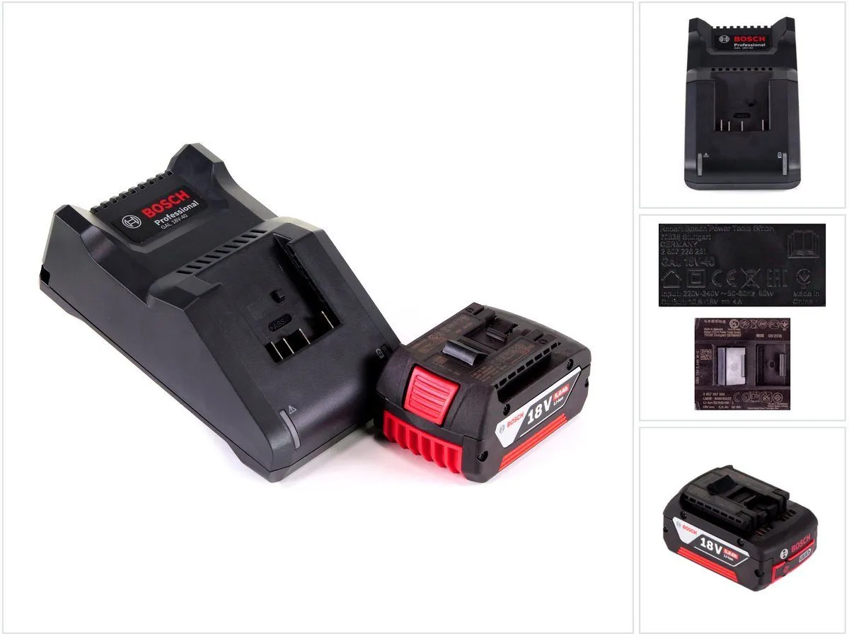 Das Set umfasst einen GBA-Akkupack und ein GAL-Ladegerät sowie das notwendige Zubehör in kompakter Ausführung. Der Akku verfügt über COOLPACK-Technologie zur verbesserten Wärmeabfuhr und eine Nennkapazität von 5,0 Ah; das Ladegerät erkennt den Ladezustand automatisch und passt Stromstärke abhängig von Temperatur und Spannung an. Das Ladegerät ist kompakt gestaltet, kann stehend oder hängend montiert werden und ist mit Bosch Professional 18V-Akkus kompatibel. Im Lieferumfang sind ein Akkupack und ein Ladegerät enthalten, beide mit den jeweiligen Herstellernummern versehen.