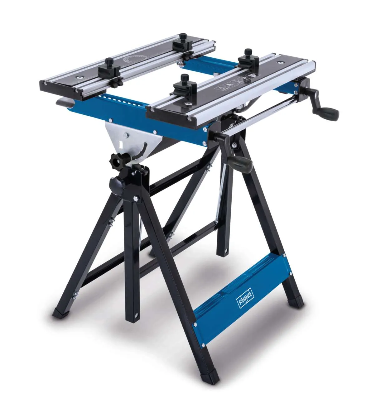 Das Modell verfügt über eine höhenverstellung mittels Fußpedal und erlaubt eine flexible Anpassung der Arbeitshöhe in mehreren Stufen. Die Arbeitsfläche besteht aus einer robusten Konstruktion aus Aluminium und Stahl und bietet eine große Auflagefläche mit Skala- und Winkelangaben zur präzisen Positionierung. Vier stufenlos verstellbare Kunststoff-Spannbacken ermöglichen sowohl Flach- als auch Rundspannen in horizontalen und vertikalen Positionen. Die Neigungsverstellung in definierten Winkeln und die klappbare Bauweise erlauben eine platzsparende Lagerung sowie einfachen Transport. Rutschfeste Gummifüße und ein standfestes Untergestell sorgen für sicheren Stand und Stabilität bei Belastungen bis zur angegebenen Maximallast.