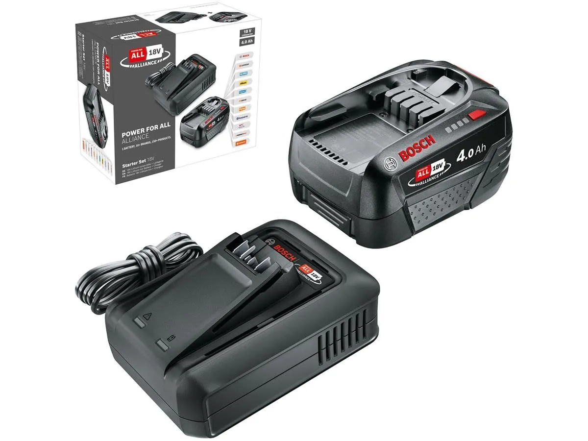 Das Akku-Starterset umfasst einen Lithium-Ionen-Akku mit einer Kapazität von 4 Ah und eine Schnellladegerät. Die Akkuspannung beträgt 18 Volt, wodurch eine leistungsstarke Energieversorgung gewährleistet wird. Die Ladedauer des Akkus beträgt etwa 60 Minuten, das Ladegerät arbeitet mit einem Ladestrom von 4,4 A. Das Set wiegt insgesamt 1,4 kg und beinhaltet den Akku PBA 18 V 4 Ah sowie das Ladegerät AL 18V-44.