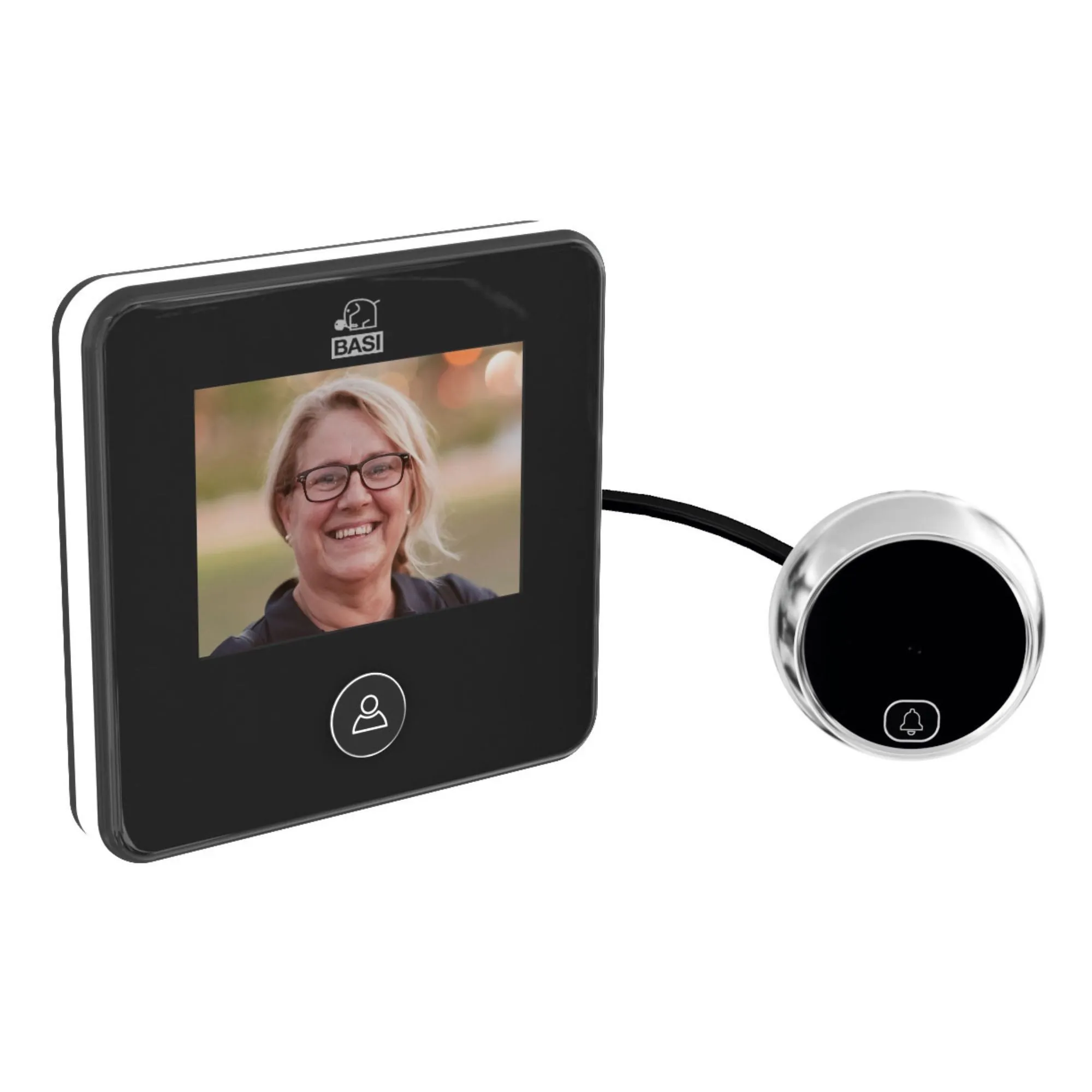 Der digitale Türspion TS 800 ist für Haus- und Wohnungstüren mit Türstärken von 35 bis 120 mm geeignet. Er verfügt über ein 2,8 Zoll großes LCD-Farbdisplay und eine 0,3 Megapixel Kamera mit einem Betrachtungswinkel von 90 Grad. Der integrierte Nachtsichtmodus mit zwei Infrarot-LEDs ermöglicht klare Sicht auch bei schlechten Lichtverhältnissen. Der Türspion speichert bis zu 90 Fotos im internen Speicher und schaltet das Display nach 15 Sekunden automatisch aus. Im Lieferumfang sind Befestigungsmaterial und ein Micro USB-Ladekabel enthalten.