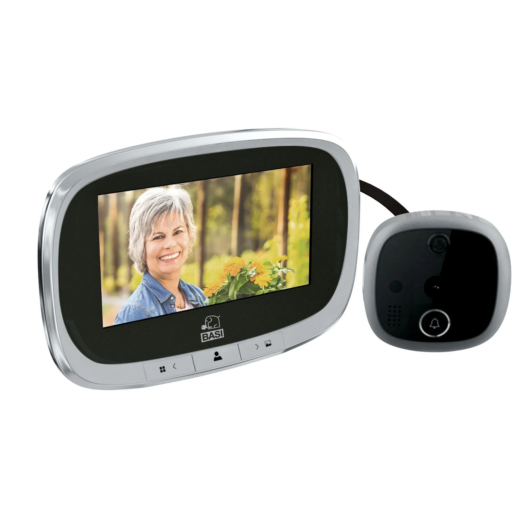 Der digitale Türspion TS 810 in Silber ist mit einer 1 Megapixel Kamera ausgestattet, die auch bei schlechten Lichtverhältnissen klare Bilder liefert. Das 4,3 Zoll große LCD-Farbdisplay ermöglicht eine Live-Überwachung des Eingangsbereichs. Ein integrierter Bewegungsmelder startet automatisch die Aufnahme von Fotos oder Videos, sobald sich jemand im Bereich von 1 bis 3 Metern nähert. Der Betrachtungswinkel der Kamera beträgt 120°, was einen weiten Überblick gewährleistet. Zusätzlich verfügt das Gerät über einen Nachtsichtmodus mit zwei Infrarot-LEDs und eine integrierte Klingel mit 12 auswählbaren Klingeltönen. Die Aufnahmen werden auf einer Micro SD-Karte mit bis zu 32 GB Speicherplatz gesichert, die separat erworben werden muss. Das Außenteil ist für Türstärken von 35 bis 120 mm geeignet.