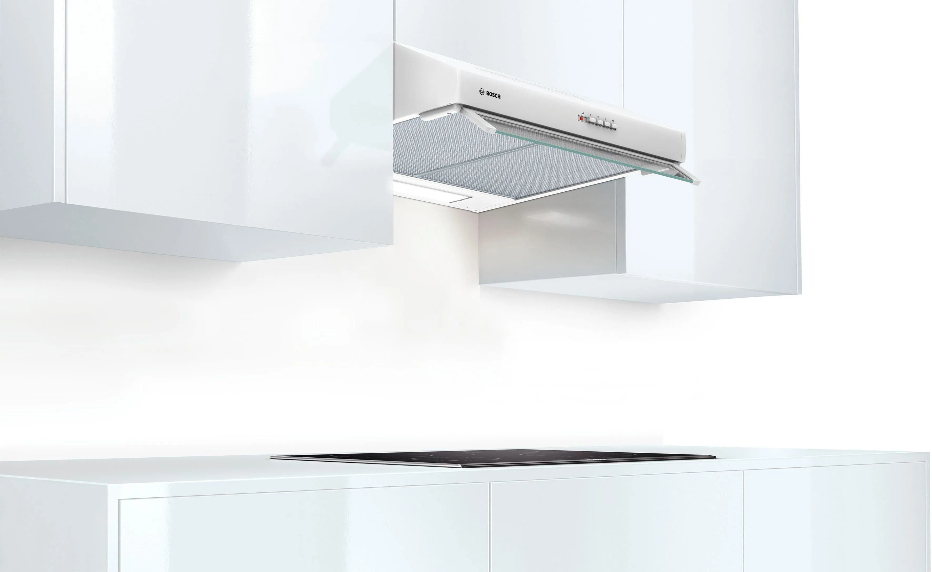Die Unterbau-Dunstabzugshaube in Weiß ist für die platzsparende Montage unter Hängeschränken oder an der Wand konzipiert. Mit einer Breite von 60 cm bietet sie eine effiziente Abluftleistung, die für eine schnelle Luftreinigung sorgt. Das Gerät ist funktional gestaltet und fügt sich durch das schlichte Design unauffällig in verschiedene Küchenumgebungen ein.
