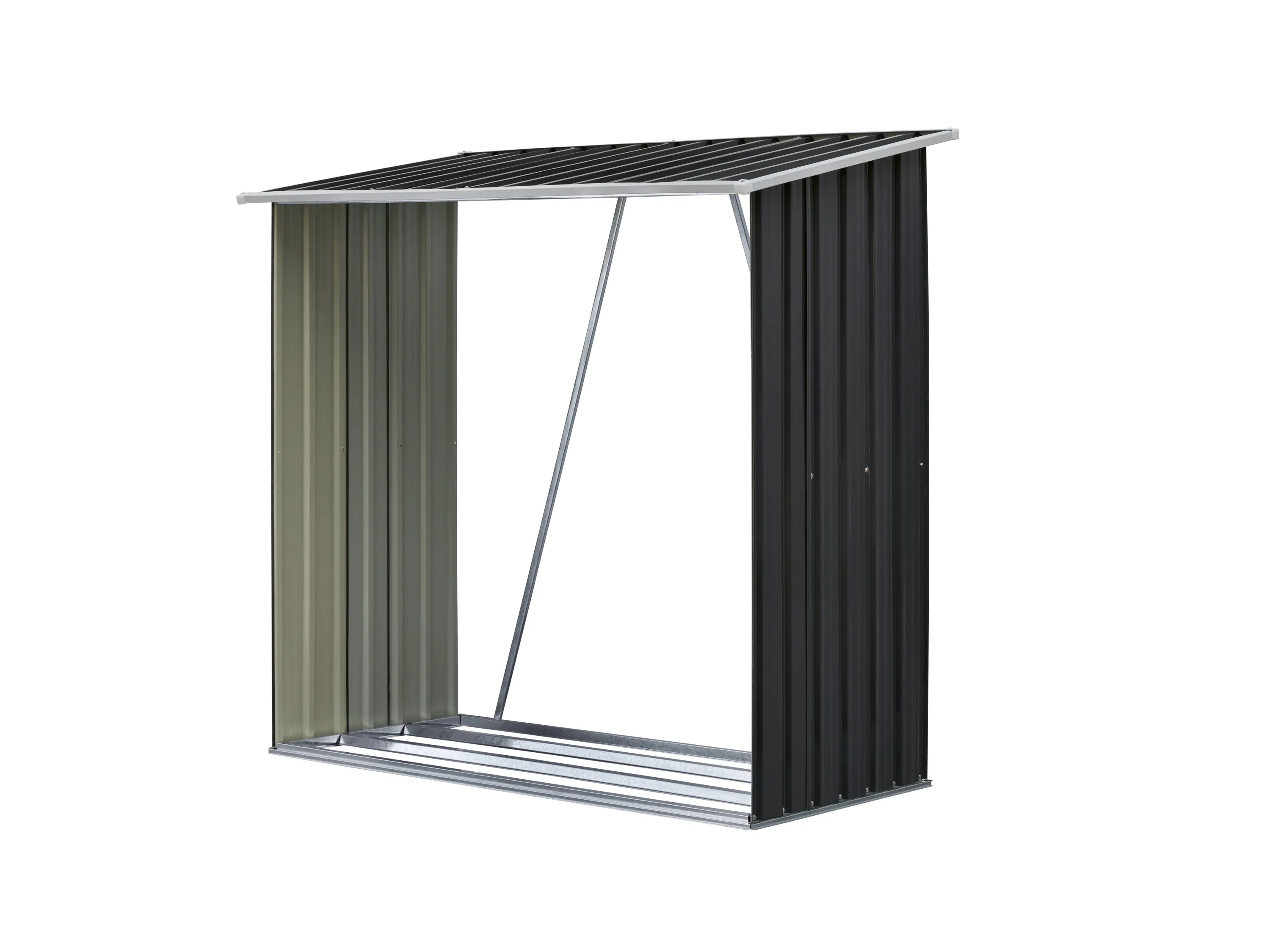 Das Kaminholzregal besteht aus pulverbeschichtetem Stahl und verfügt über eine stabile Konstruktion mit Profilversteifungen für erhöhte Stabilität. Die Materialien umfassen galvanisiertes Wellblech, feuerverzinkte Stahlstreben sowie Kunststoffrahmen und Eckelemente. Das Regal ist witterungsbeständig und eignet sich für die geordnete Lagerung von Brennholz im Innen- und Außenbereich. Es bietet ein Fassungsvermögen von 1,56 m³ und ist mit einem Dachüberstand versehen, der zusätzlichen Schutz bietet.