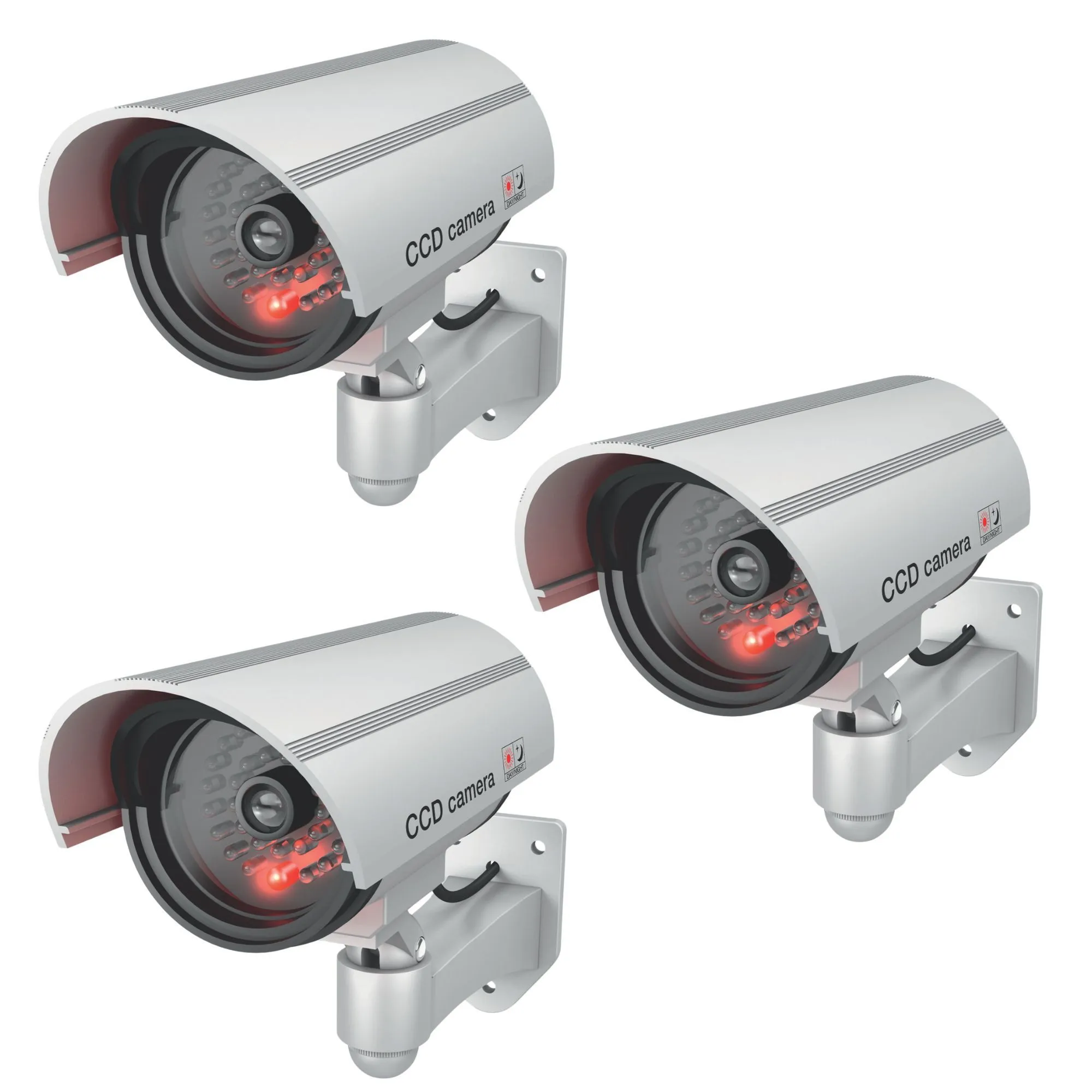 Die Dummy-Kamera besteht aus robustem ABS-Kunststoff und ist für den Innen- und Außenbereich geeignet. Sie verfügt über ein realistisches Design mit rotem LED-Licht, das eine echte Überwachungskamera imitiert. Die Befestigung erfolgt stabil und einfach mit dem mitgelieferten Montagematerial, wodurch eine unkomplizierte Installation gewährleistet wird.