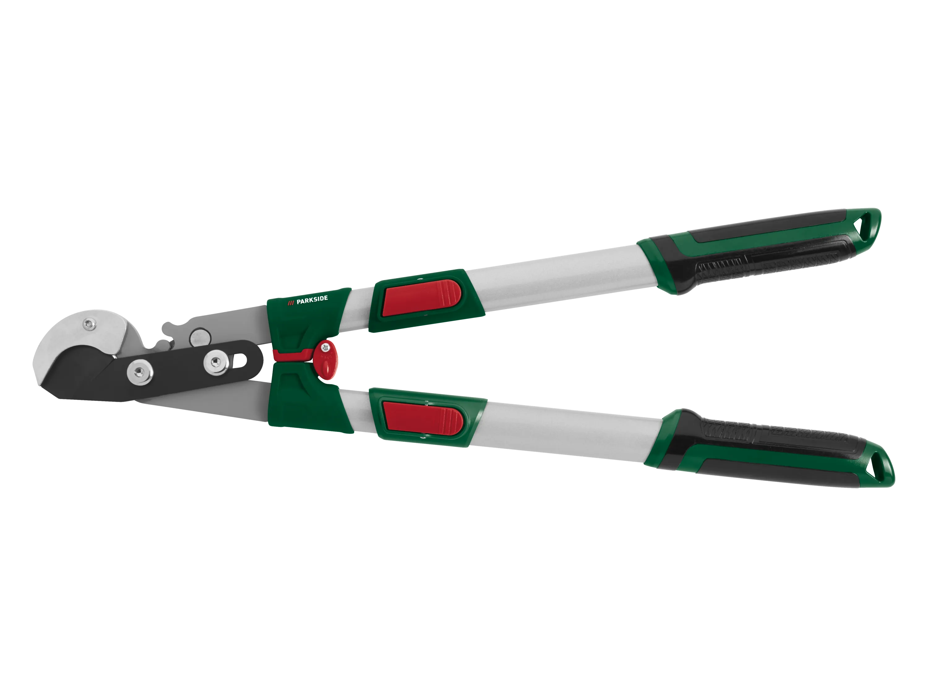 Die Astschere verfügt über eine doppelte Klinge für präzise und saubere Schnitte an frischen Zweigen und Ästen. Sie ist mit 5-stufig einstellbaren Teleskoparmen ausgestattet, die eine variable Griffverlängerung ermöglichen und mit Sicherheits-Schnellverschlüssen versehen sind. Die Schneidklinge aus Stahl ist antihaftbeschichtet (Ilag®) und sorgt für lang anhaltende Schärfe. Ergonomische, rutschfeste Komfort-Softgriffe erhöhen die Handhabungssicherheit, während eine Sicherheitsverriegelung unbeabsichtigtes Öffnen verhindert.