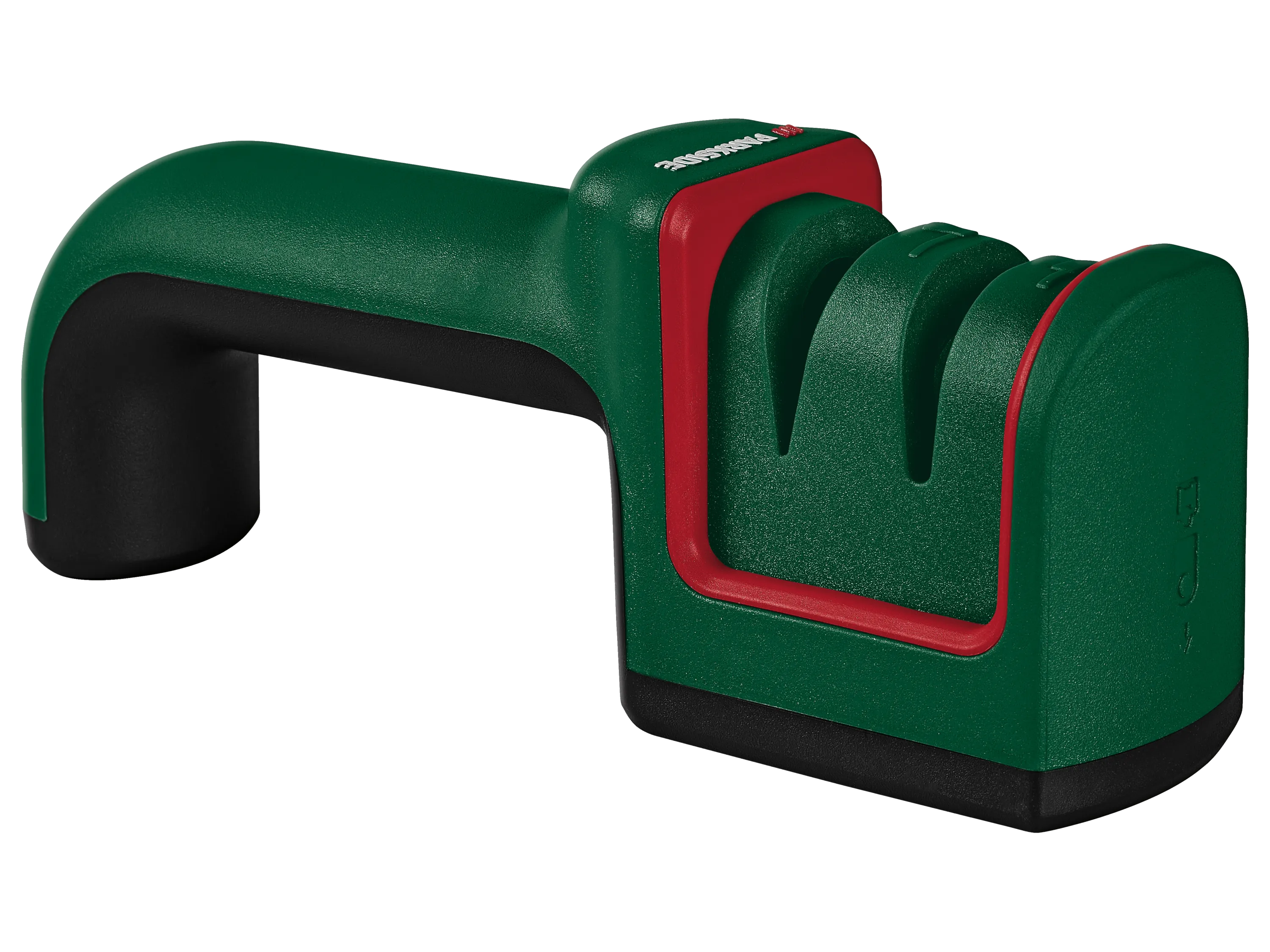 Das Set umfasst ein Universalmesser, ein Handmesser sowie einen 3 in 1 Axt- und Messerschärfer. Die Klingen der Messer bestehen aus rostfreiem Stahl und sind langlebig sowie scharf. Der Schärfer verfügt über diamantbeschichtete Schleifscheiben, zwei Führungsschlitze für unterschiedliche Klingen und einen integrierten Schneidschutz. Ergonomisch geformte Griffe mit rutschhemmender Unterseite sorgen bei allen Teilen für sicheren Halt. Die Schärfeeinheit des Schärfers ist herausnehmbar und erleichtert die Reinigung. Zudem ist ein Etui mit Clip für die Messer enthalten.