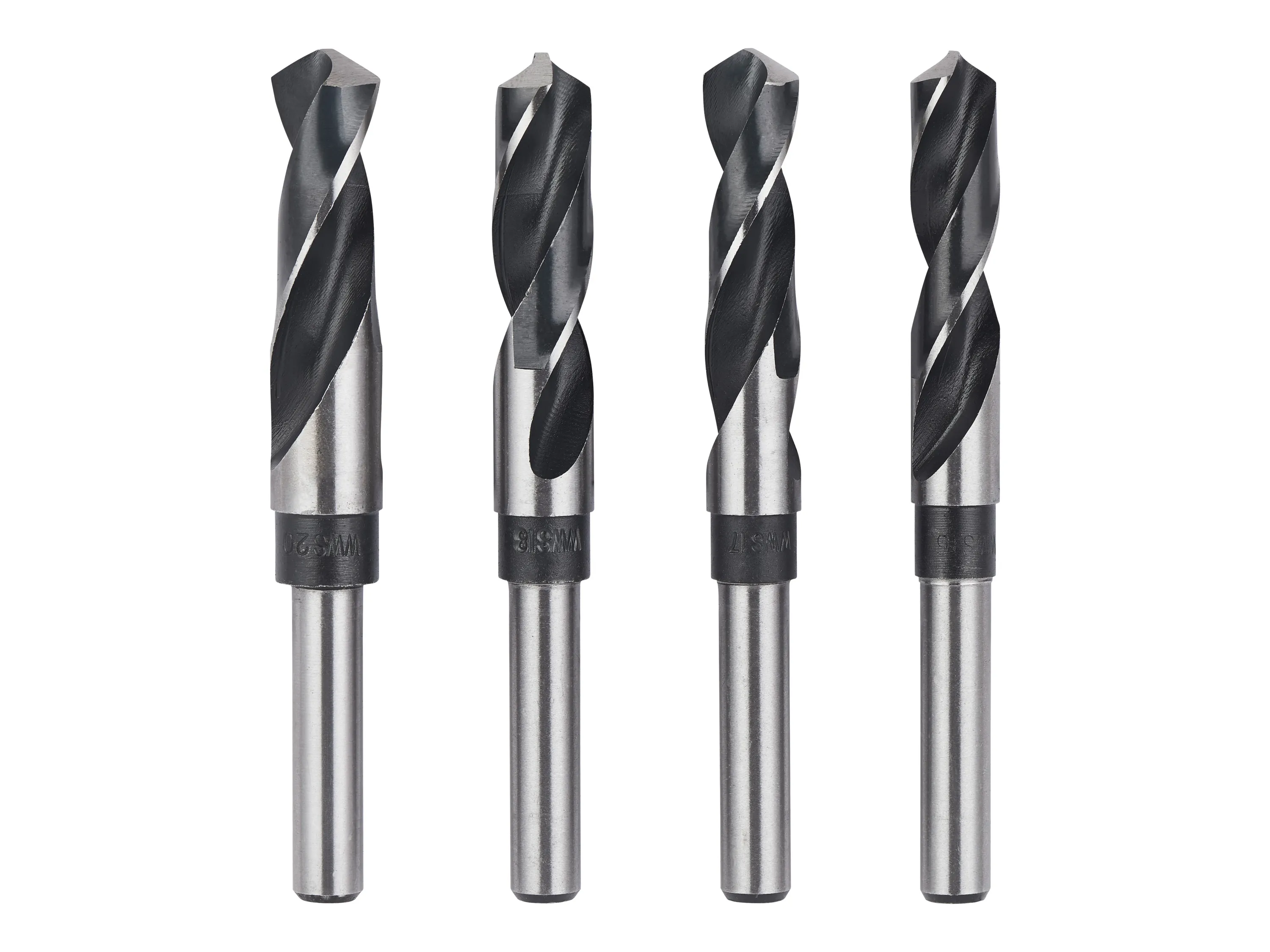 Das HSS-Spiralbohrer-Set PASP 4 A1 umfasst vier Bohrer mit unterschiedlichen Durchmessern aus Karbonstahl mit HSS-Spitze. Die Bohrer sind für den Einsatz in unlegiertem Stahl, Aluminium, Kunststoff und Holz geeignet und passen auf handelsübliche Standbohrmaschinen mit einem Schaftdurchmesser von 12,7 mm. Die maximale Bohrtiefe variiert je nach Bohrerdurchmesser, ebenso die empfohlene Drehzahl. Das Set bietet eine präzise und vielseitige Auswahl an Bohrern für verschiedene Materialien und Anwendungen.