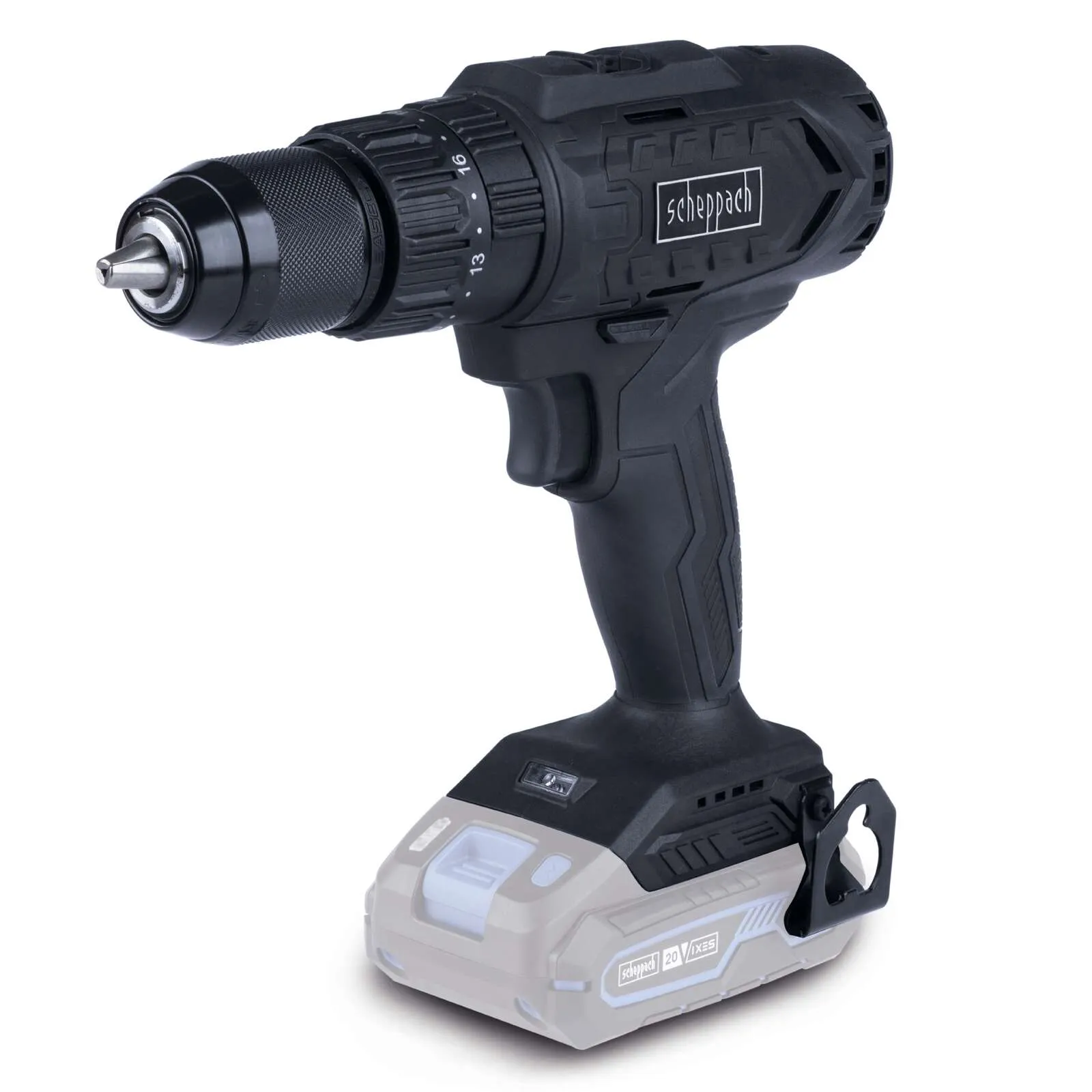 Die Akku-Schlagbohrmaschine verfügt über eine 3in1-Funktion zum Bohren, Schlagbohren und Schrauben. Sie ist mit einem robusten Schnellspannmetallbohrfutter mit einem Spannbereich von 1,5 bis 13 mm ausgestattet und bietet eine stufenlos regulierbare Drehzahl über einen Ein-/Ausschalter. Das Gerät besitzt eine LED-Arbeitsleuchte mit verlängerter Leuchtdauer, einen Rechts- und Linkslauf sowie ein ergonomisches Design mit Softgrip und Gürtelclip. Akku und Ladegerät sind separat erhältlich und kompatibel mit der Scheppach IXES 20-Volt-Serie.
