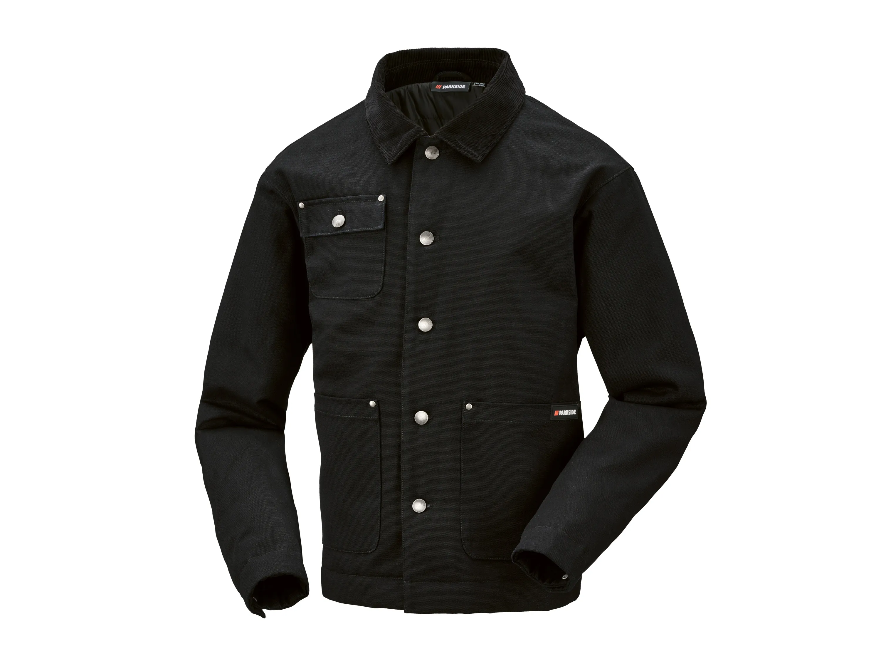 Die Herren-Arbeitsjacke besteht aus robuster Canvas-Qualität und ist in Schwarz gehalten. Sie verfügt über aufgesetzte Taschen und einen hochwertigen, recycelten YKK-Markenreißverschluss. Der legere Schnitt sorgt für angenehmen Tragekomfort, während das Obermaterial aus 100 % Baumwolle gefertigt ist. Das Futter und die Wattierung bestehen aus 100 % recyceltem Polyester. Die Jacke ist nach dem Oeko-Tex® Standard 100 sowie dem Global Recycled Standard (GRS) zertifiziert und unterstützt nachhaltigen Baumwollanbau in Afrika.
