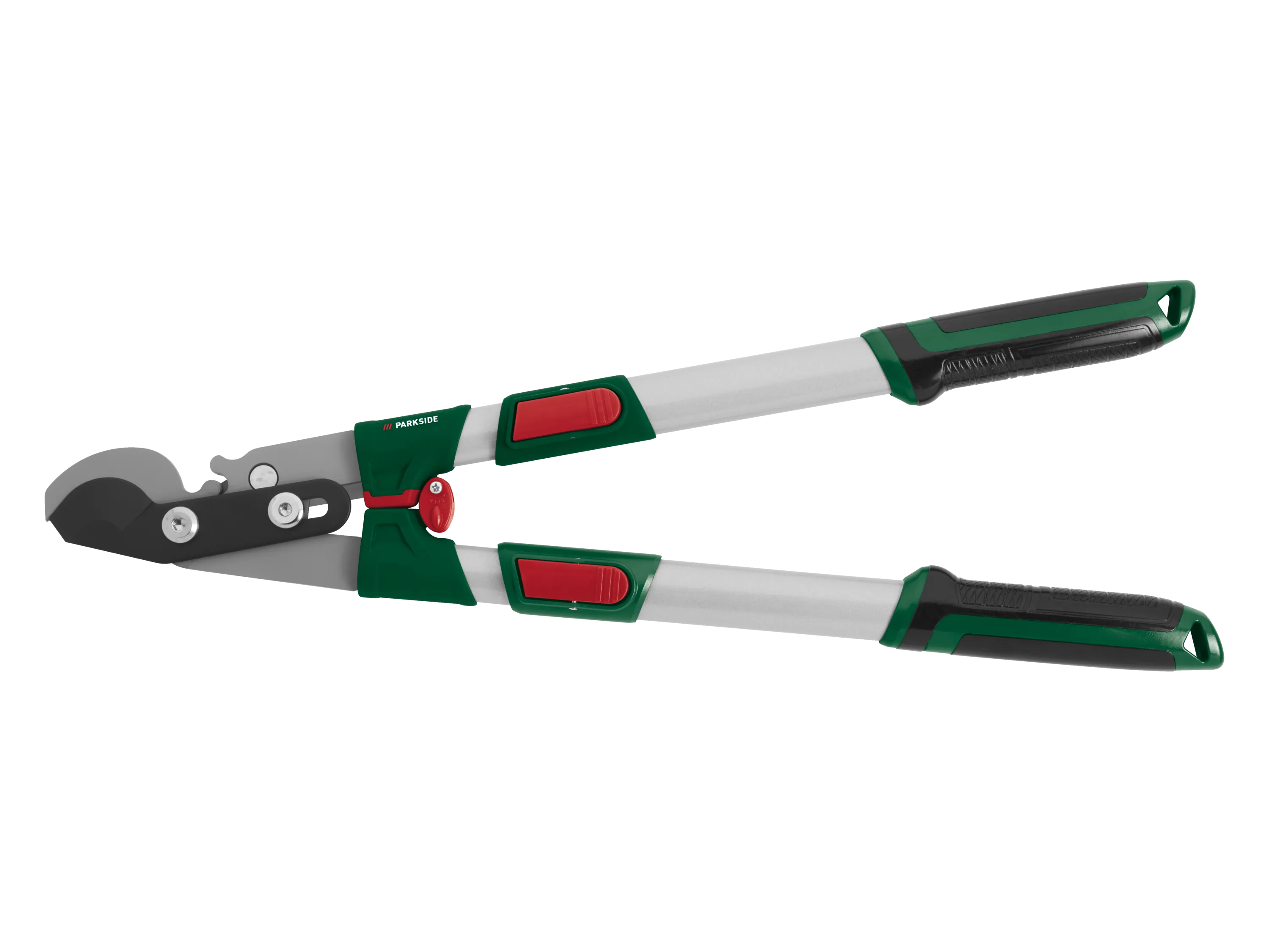 Die Astschere verfügt über eine doppelte Klinge für eine präzise und saubere Schnittführung. Sie ist mit 5-stufig einstellbaren Teleskoparmen ausgestattet, die eine variable Griffverlängerung ermöglichen und durch Sicherheits-Schnellverschlüsse gesichert sind. Die Schneidklinge aus Stahl ist antihaftbeschichtet (Ilag®) und sorgt für lang anhaltende Schärfe. Ergonomische Komfort-Softgriffe bieten einen rutschfesten Halt, während eine Sicherheitsverriegelung ein unbeabsichtigtes Öffnen der Schere verhindert. Die Schere ist für das Schneiden von frischen Zweigen und Ästen bis zu einer Stärke von etwa 4 cm geeignet.