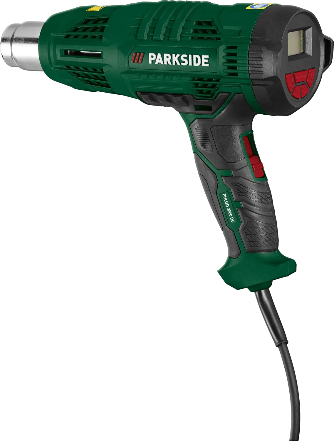 Das Digital Heißluftgebläse verfügt über eine präzise Temperatureinstellung in 10er-Schritten von 50 bis 650 °C, die über ein integriertes LC-Display mit Memory-Funktion gesteuert wird. Die Temperaturanzeige erfolgt in Grad Celsius, unterstützt durch eine Hintergrundbeleuchtung, die verschiedene Betriebsphasen farblich signalisiert. Das Gerät bietet eine 5-stufig einstellbare Gebläseleistung und eine automatische Cool-Down-Funktion mit Count-Down-Anzeige. Das robuste Gehäuse ist mit Softgrip ausgestattet und ermöglicht einen aufrechten, stationären Einsatz. Im Lieferumfang sind verschiedene Düsenaufsätze aus Edelstahl enthalten, die vielseitige Einsatzmöglichkeiten erlauben.