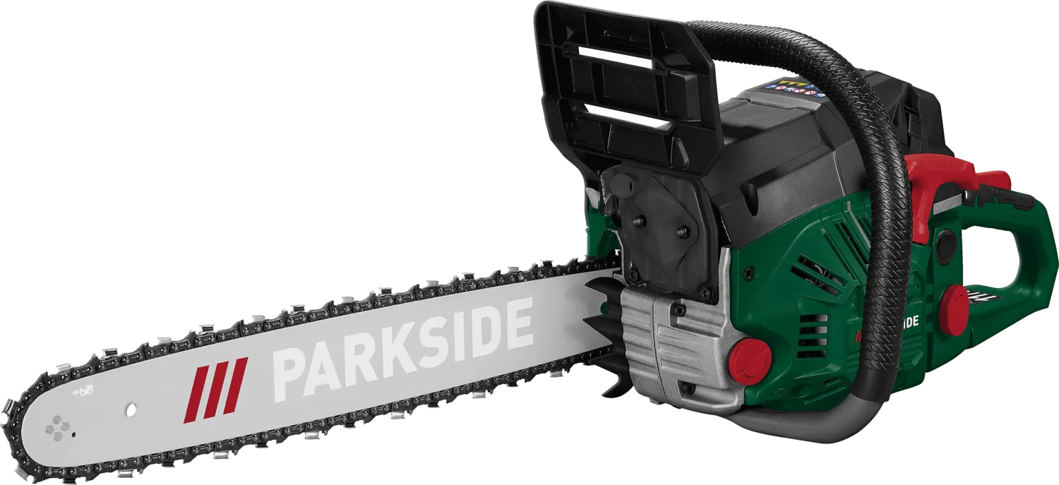 Die Benzin-Kettensäge verfügt über einen leistungsstarken 2-Takt-Motor und ist mit einem wartungsfreien Zündsystem sowie Seilzugstarter ausgestattet. Das Gerät ist mit Anti-Vibrationsausrüstung, einer Rückschlagbremse und einem automatischen Kettenölsystem ausgeführt. Schwert und Sägekette bestehen aus robusten Materialien, ein Krallenanschlag erhöht die Standfestigkeit beim Schneiden. Im Lieferumfang sind Schutzhülle, Kombi-Werkzeug, Kraftstoff-Mischflasche und 500 ml Bio-Sägekettenöl enthalten. Das Gehäuse und Bedienelemente bestehen aus Kunststoff, der Fällgriff aus Aluminium; die Maße und das Gewicht sind als konkrete Spezifikationen angegeben.