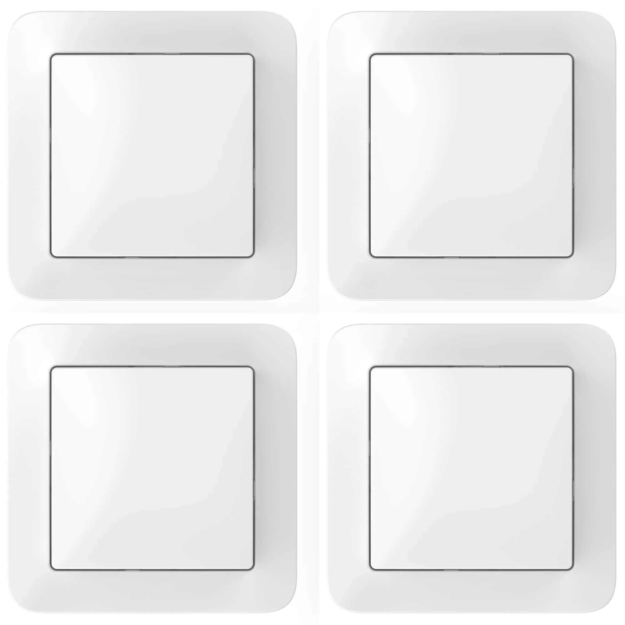 Das Set umfasst vier Einbau-Wandschalter zur Integration in intelligente Installationen. Die Ausführungen sind für den platzsparenden Unterputz-Einbau konzipiert und sind kompatibel mit Aktoren, die einen oder zwei Schaltausgänge besitzen. Genannt werden Anwendungen für Licht- und Rollladensteuerung, Dimmerfunktionen sowie Relaisansteuerung. Jeder Schalter ist als 2-Wege-Taster ausgeführt und ermöglicht die Anbindung an die entsprechenden smarten Aktoren. Der Lieferumfang besteht aus vier Wandschaltern, die auf einfache Montage und platzsparende Installation ausgelegt sind. Technische Anschluss- oder Montagedetails sind abhängig vom verwendeten Aktor und der Installationsumgebung.