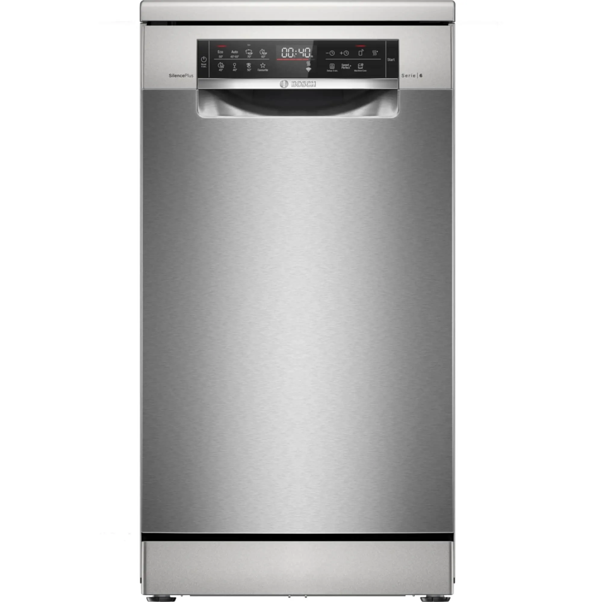 Die Geschirrspülmaschine verfügt über eine kompakte Bauhöhe und eine maßvolle Breite, die platzsparende Einbaumöglichkeiten erlaubt. Das Gerät ist mit einer Vernetzungsschnittstelle ausgestattet, die Fernsteuerung und Statusabfrage ermöglicht. Die Innenausstattung umfasst flexible Körbe und eine spezielle Schublade für Besteck sowie mehrere Programme und zusätzliche Funktionen zur Anpassung an unterschiedliche Verschmutzungsgrade. Verarbeitung und Bedienbereiche sind auf einfache Handhabung ausgelegt, während die Aufnahmekapazität und Programmauswahl klar gekennzeichnet sind.