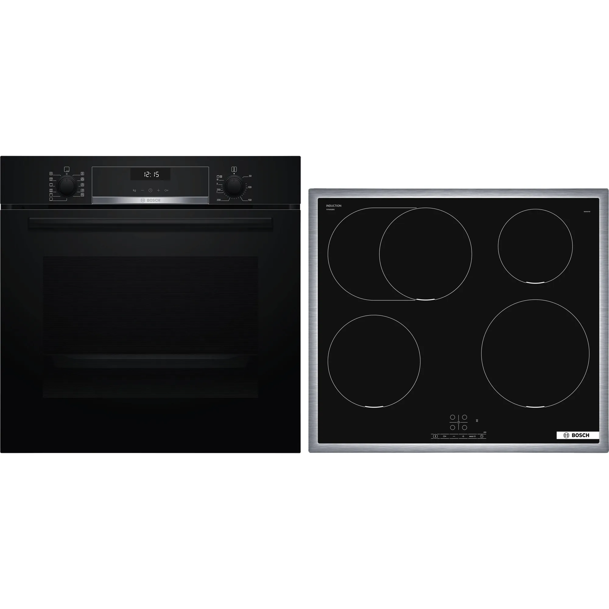 Das Backofen-Set umfasst einen Einbau-Backofen sowie ein Induktionskochfeld und präsentiert sich in einer klaren, modernen Gestaltung. Der Backraum bietet eine großzügige Kapazität und das Kochfeld verfügt über sensible Temperaturregelung für präzises Garen. Die Ausstattung umfasst mehrere Heizarten, gut ablesbare Bedienfelder und eine hochwertige Verarbeitung der Oberflächen. Lieferumfang und Aufbau sind auf die Kombination aus Backofen und Kochfeld abgestimmt, wobei beide Geräte aufeinander abgestimmte Bedienelemente und eine einheitliche Optik aufweisen. Die Komponenten sind für den Einbau in Standard-Küchenzeilen ausgelegt und zeigen eine solide Materialausführung.
