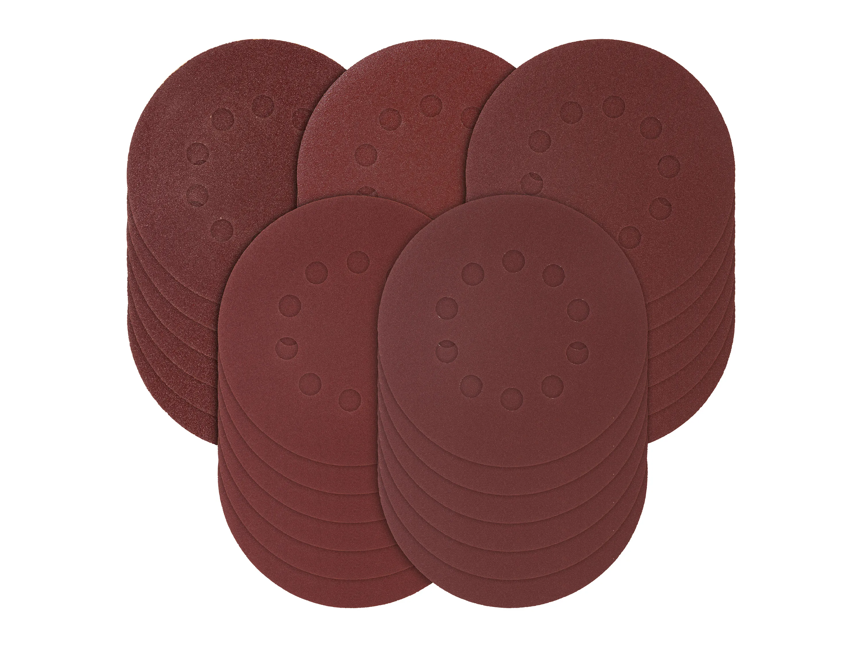 Es handelt sich um Schleifpapier für Wand- und Bodenbearbeitungssysteme in einer Zusammenstellung verschiedener Körnungen. Das Set umfasst gelochte Blätter mit Klettbefestigung, die für staubabsaugende Geräte geeignet sind und einen einfachen Wechsel ermöglichen. Die Ausführung ist für Schleifteller mit 180 mm Durchmesser kompatibel und wird in einer Packung mit mehreren Körnungsstufen geliefert. Die Blätter sind für das Schleifen von Holzböden, Holzmöbeln und Wänden vorgesehen und liegen als mehrere gleich große Stapel mit jeweils spezifischem Gewicht vor.