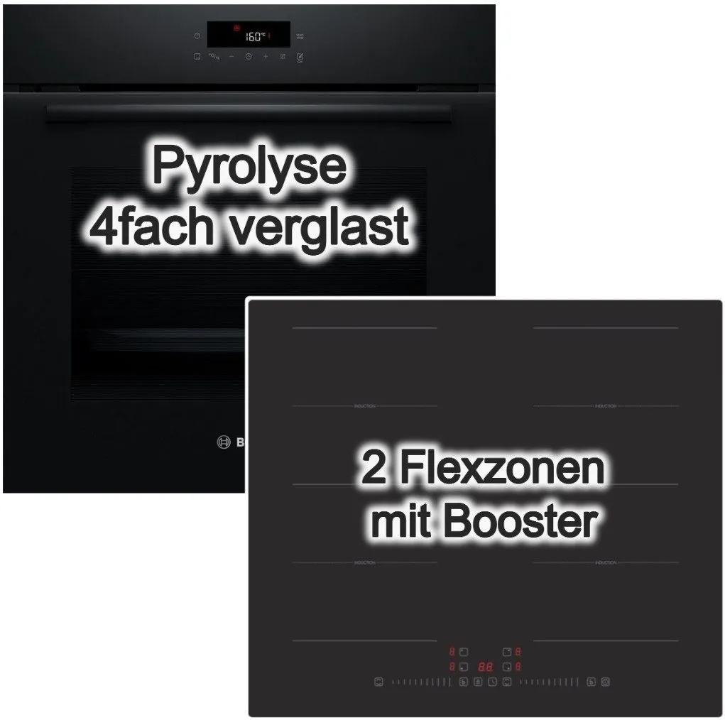 Das Set besteht aus einem Einbau-Pyrolyse-Backofen mit großem Garraum und einem autarken 60 cm Induktionskochfeld. Der Backofen bietet 71 Liter Volumen, fünf Einschubebenen, 3D-Heißluft sowie mehrere Beheizungsarten und eine automatische Pyrolyse-Selbstreinigung ergänzt durch eine hydrolytische Reinigungshilfe. Das Induktionskochfeld verfügt über zwei Flexzonen, Booster-Funktion, automatische Topferkennung und Touch-Slider-Bedienung. Sicherheitsmerkmale wie 4-fach Türverglasung, Kindersicherung, Überhitzungsschutz und Restwärmeanzeige sind integriert. Das Design ist rahmenlos und ermöglicht eine flächenbündige Einbaumöglichkeit.