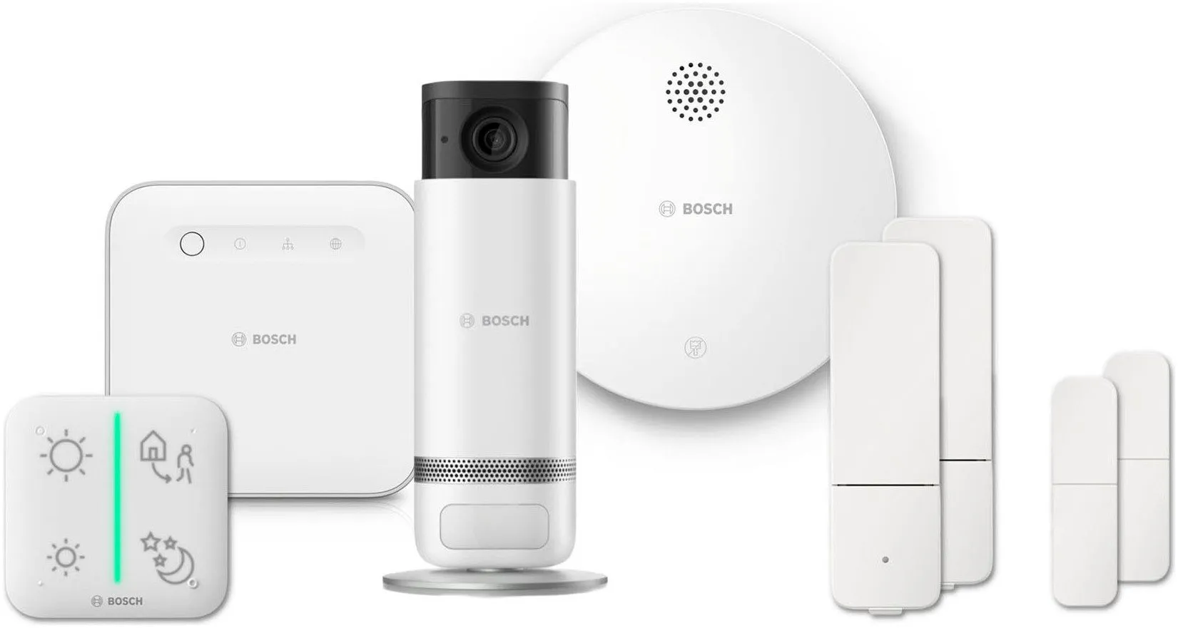 Das Set beinhaltet einen zentralen Smart Home Controller II, einen Rauchwarnmelder II, einen Universalschalter II, zwei Tür-/Fensterkontakte II sowie eine Eyes Innenkamera II. Der Controller verbindet Geräte per Zigbee und Heimnetzwerk, speichert Daten lokal und bietet Matter-Kompatibilität sowie Steuerung per App, Sprache oder Automationen. Der Rauchwarnmelder verfügt über eine integrierte Sirene und Weitergabe von Alarmen an andere Melder; die Tür-/Fensterkontakte zeigen Öffnungszustand in der App an und besitzen einen integrierten Button mit Pausenfunktion. Der Universalschalter ist mit vier Tasten versehen, die jeweils mit bis zu zwei Funktionen belegbar sind und sowohl als Wandtaster als auch tragbare Fernbedienung dienen. Die Innenkamera zeichnet 145° Full-HD-Videos auf, verfügt über Infrarot-Nachtsicht, eine integrierte Sirene, versenkbaren Kamerakopf und optionale Audio+-Erweiterung zur Erkennung von Glasbruch und Alarmtönen.