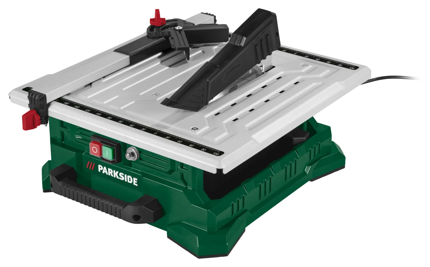 Die Fliesenschneidemaschine ist für präzise Nasschnitte in Fliesen, Kacheln und keramischen Werkstoffen ausgeführt. Der Arbeitstisch verfügt über eine beidseitige Skala zur exakten Schnittbreiteneinstellung und ermöglicht die präzise Führung des Materials. Die Maschine ist aus Metall und Kunststoff gefertigt und wird mit einer Diamanttrennscheibe sowie zwei Werkzeugen zum Sägeblattwechsel geliefert. Die kompakte Bauform mit angegebenen Gesamtmaßen und das moderate Gewicht sorgen für eine handliche Handhabung und eine übersichtliche Aufstellfläche. Die Bedien- und Einstellmöglichkeiten umfassen variable Schnittwinkel und eine definierte Schnitttiefe.